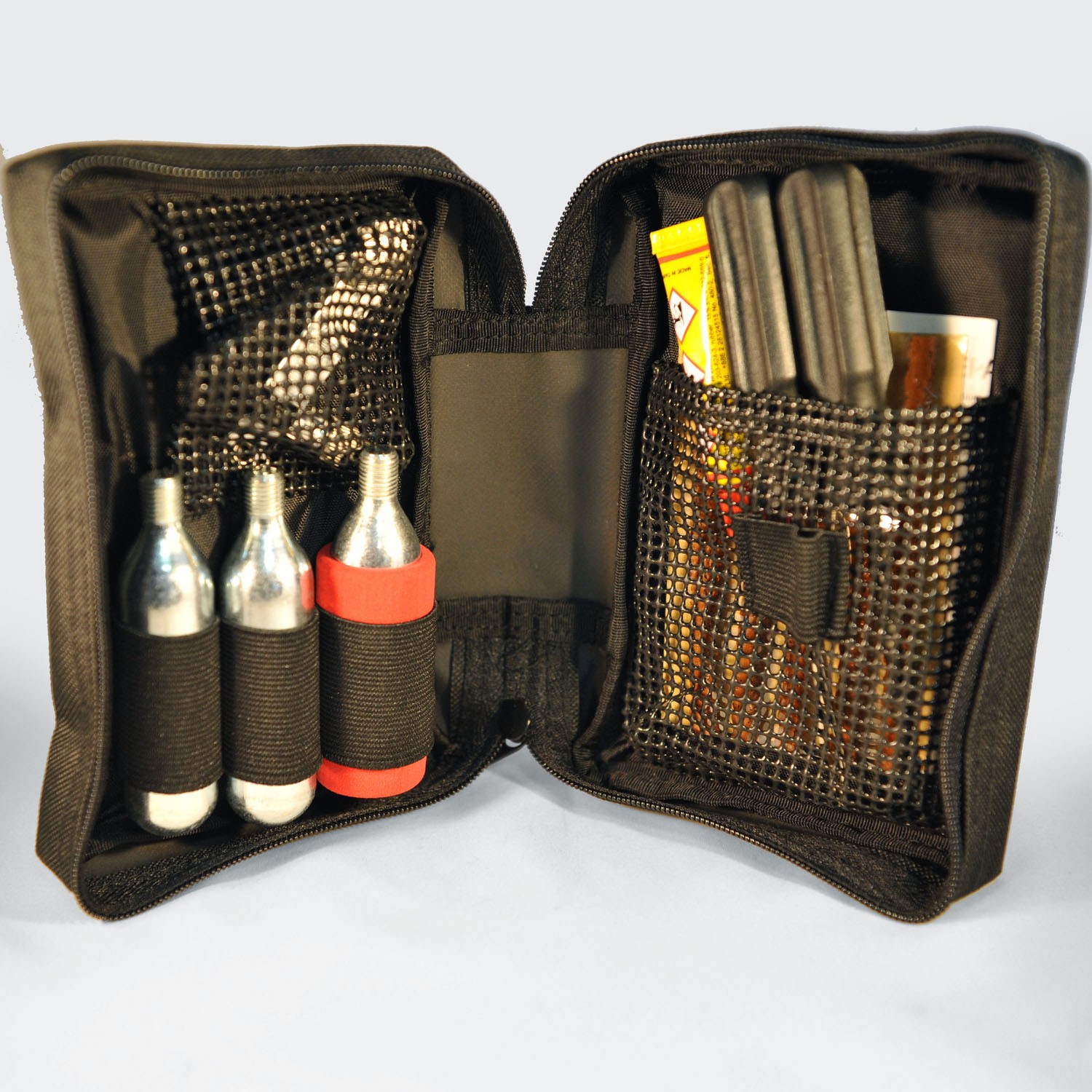 Ce petit kit réparation de crevaison pour pneus tubeless est livré avec sa pochette de transport.