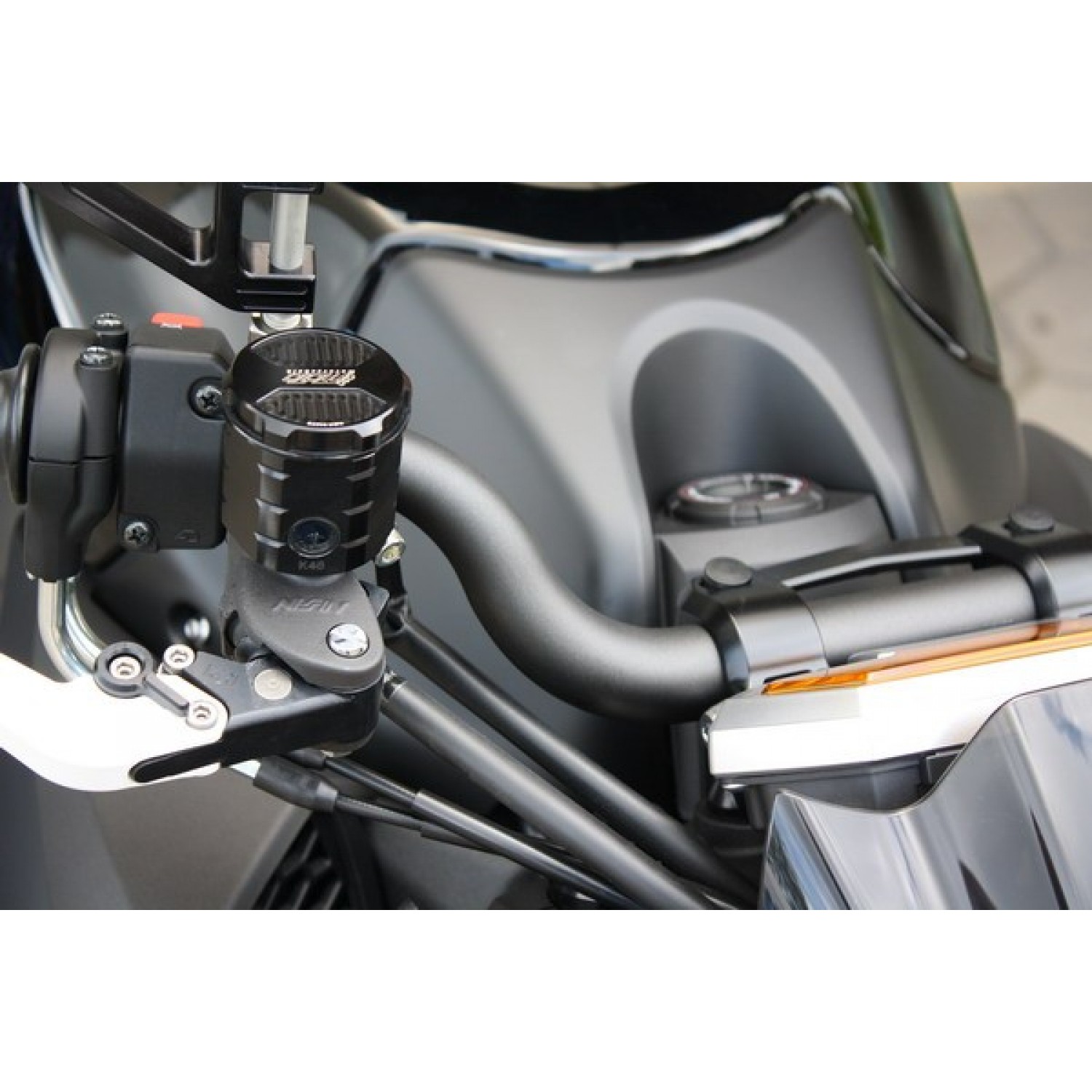 GSG a usiné ce bocal de frein avant pour le Z1000 2014. Il se monte sans durite, directement sur le maître-cylindre et il est livré avec sa patte de fixation.