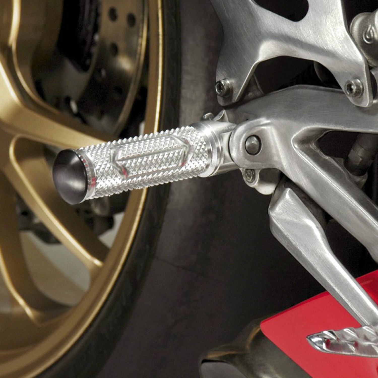 Ce jeu de cale pieds Pour Panigale V4 a été fabriquée en Italie par DeprettoMoto. Prêt à monter en lieu et place des éléments d'origine, aussi bien pilote que passager, ils apportent à la fois un meilleur grip, un embout Teflon et un design amélioré par rapport aux cale-pieds d'origine.