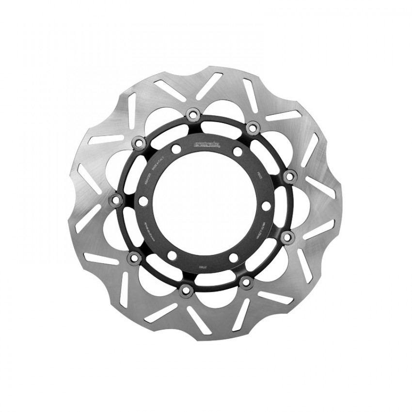 Ce disque de frein Wave PRO BRAKE est de type flottant (Vendu à l'unité). La très haute qualité de l'acier inoxydable qui compose la piste de frein, resiste aux fortes frictions et permet de garder une qualité de freinage optimale même dans les conditions extrêmes. Les dimensions de ce disque correspondent aux côtes d'origine pour un montage sur jante d'origine ou adaptable pour la Daytona 1200 91-99.