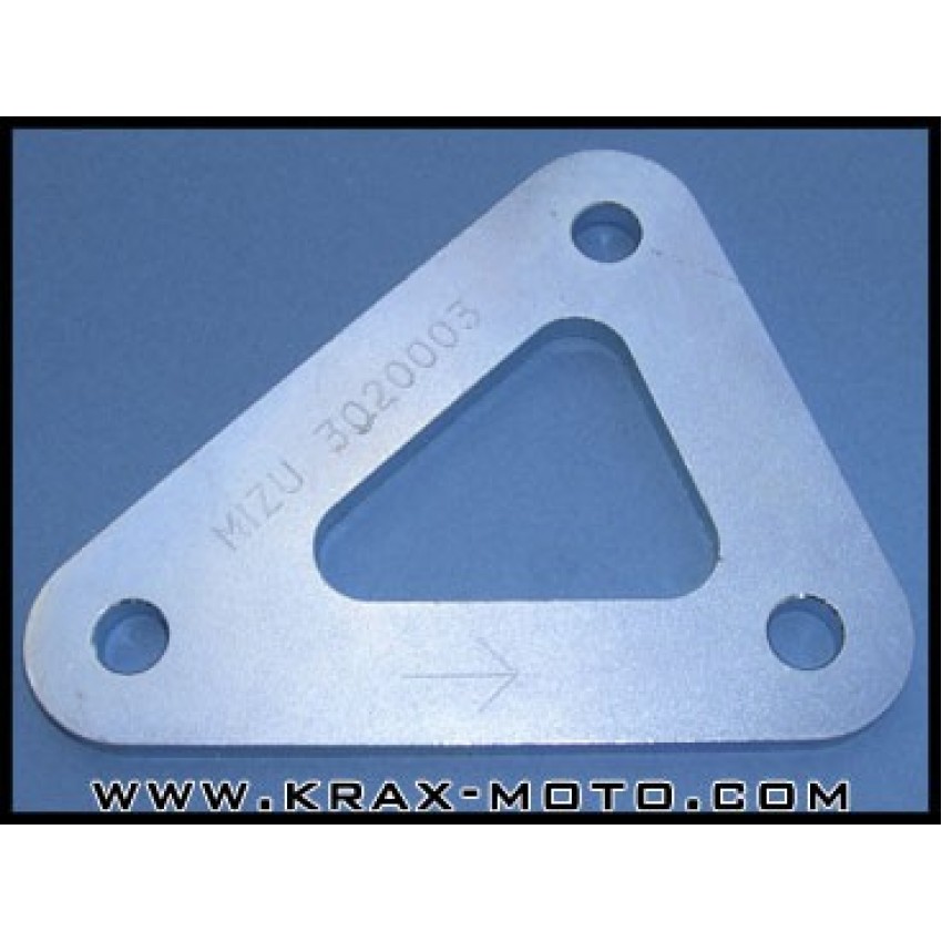 Pour Tiger 1050, Mizu propose ce kit de surélévation de 25mm, pour les pilotes qui trouveraient la selle trop basse ou qui voudraient simplement remonter l'arrière de la moto. Les kits de surélévation MIZU sont fabriqués en aluminium ou en acier traité et sont fournis avec un certificat d'homologation TÜV qui en plus du contrôle de la qualité atteste de la robustesse de chaque kit et vérifie qu'après la pose d'un kit : - le béquillage latérale est toujours dans les normes CEE, - le débattement de la roue arrière est suffisant dans la limite du poids total en charge déclaré par le constructeur de la moto. Le PTC est indiqué sur la carte grise, ne le dépassait jamais. Notez que si la pièce remplacée comporte des roulements et/ou des joints d'étanchéité, ceux-ci sont fournis et montés. Principaux avantages des solutions MIZU : - solutions rapides et économiques - certification TÜV - compatibilité avec la béquille et l'ensemble de la moto - très simples à monter et à démonter, non destructif - aspect très soigné et discret - marquage d'identification sur chaque pièce livrée - 2 ans de garantie - qualité de fabrication ISO 9001