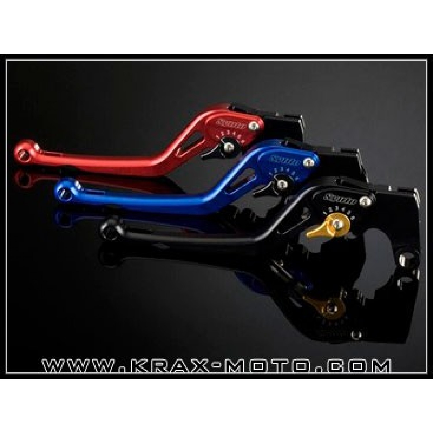 - 6 couleurs de levier et de molette sont proposées: Alu, noir, or, titane, bleu et rouge.