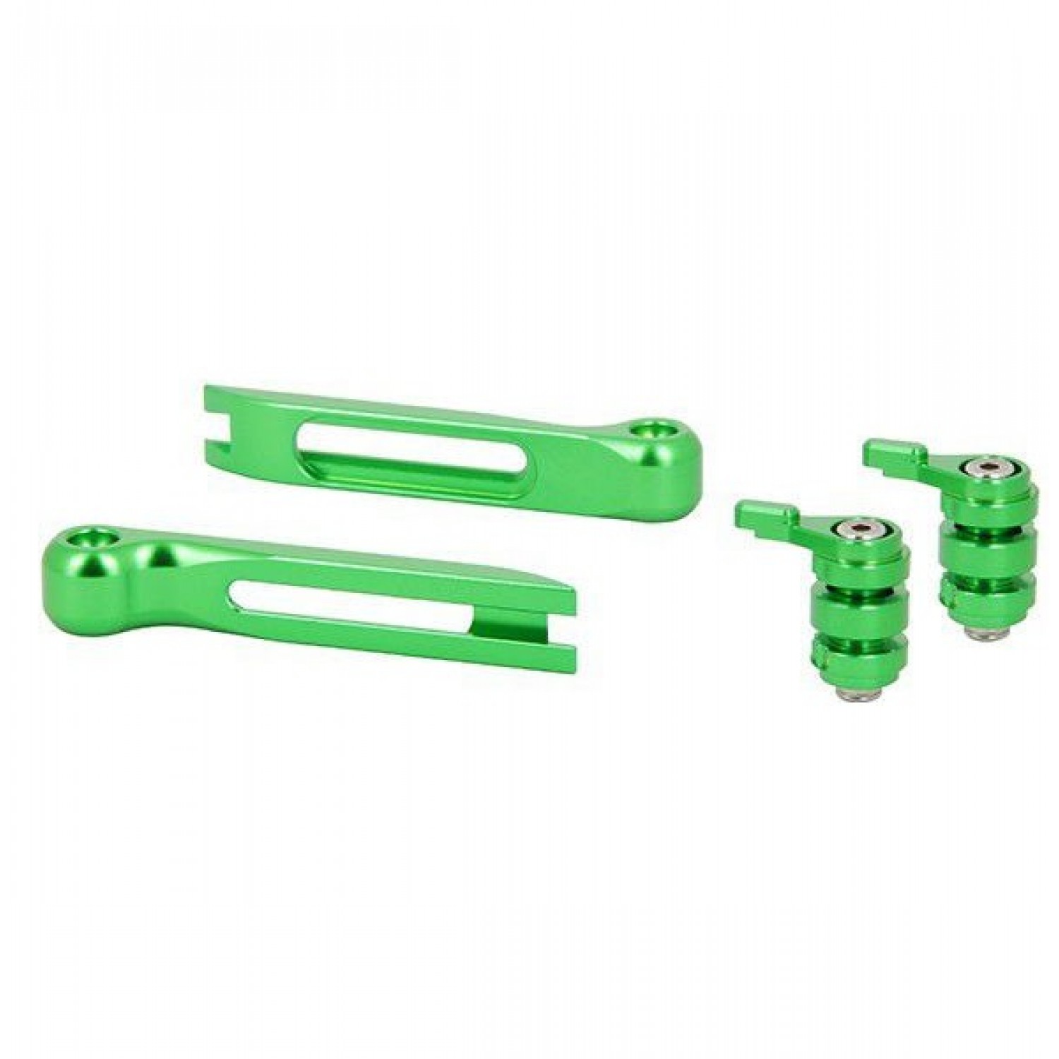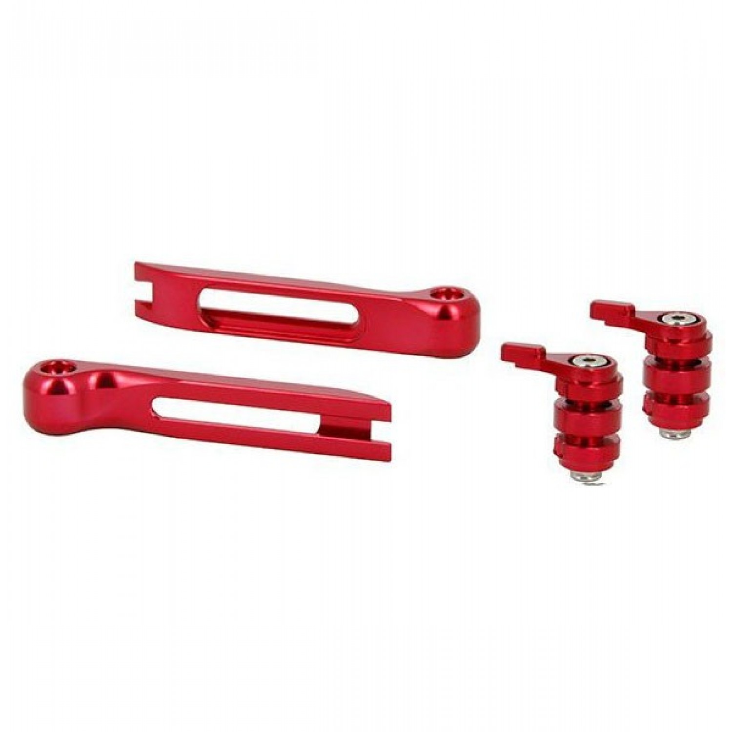 Cette paire de leviers de frein et embrayage est en aluminium taillé dans la masse. La garde est réglable grâce à la molette et ils sont réglables en longueur (La partie sur glissière permet de passer d'un levier court à un modèle long) En option, il est possible de commander le lot molettes+embouts de couleur (Or, vert, rouge ou bleu)