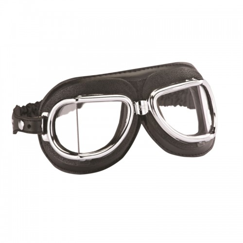 Ces lunettes de la marque Climax 513NP sont constituées d'un masque en cuir noir rembourré de mousse, avec cercles en métal chromé