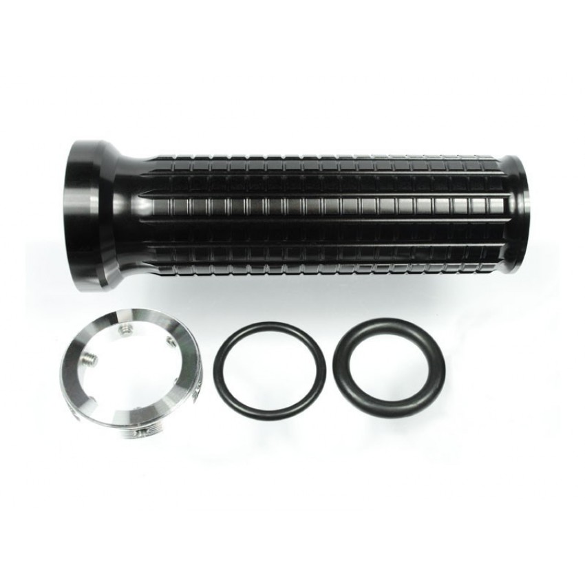 Cette paire de poignées en aluminium m-Grip a été créé par Motogadget. Entièrement usinées en aluminium, elles se monteront sur les guidons de 22mm ou 1" grâce à des bagues de fixations.