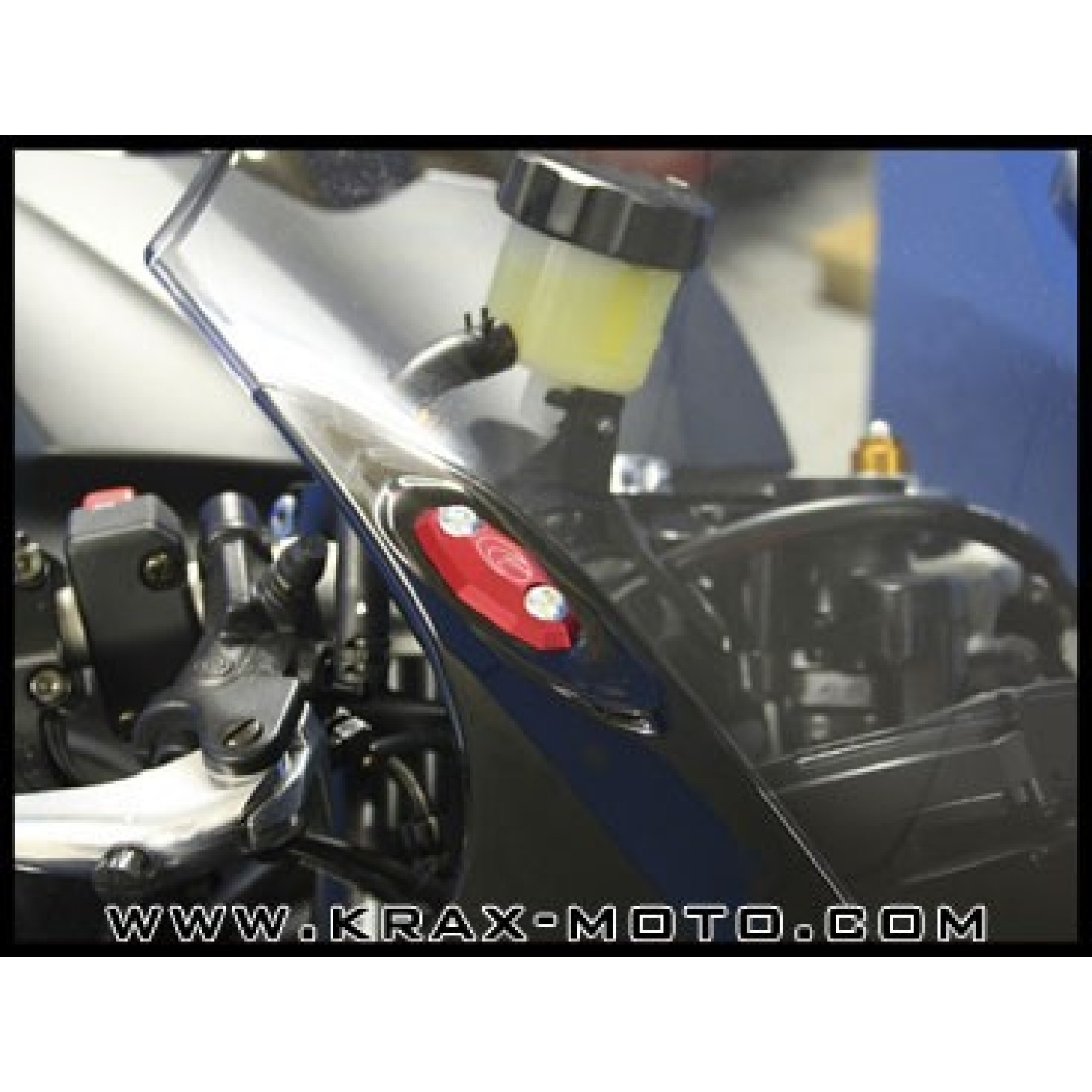 Cette paire de caches fixations de retroviseurs pour CBR 600 RR 2003-2009 est en alu taillé dans la masse par Evotech. Ils permettent de maintenir le carénage en place lors d'une utilisation piste quand les rétroviseurs son retirés. Leur design et le choix de 6 coloris vous permettront d'apporter une touche ésthétique à votre machine meme en utilisation piste.