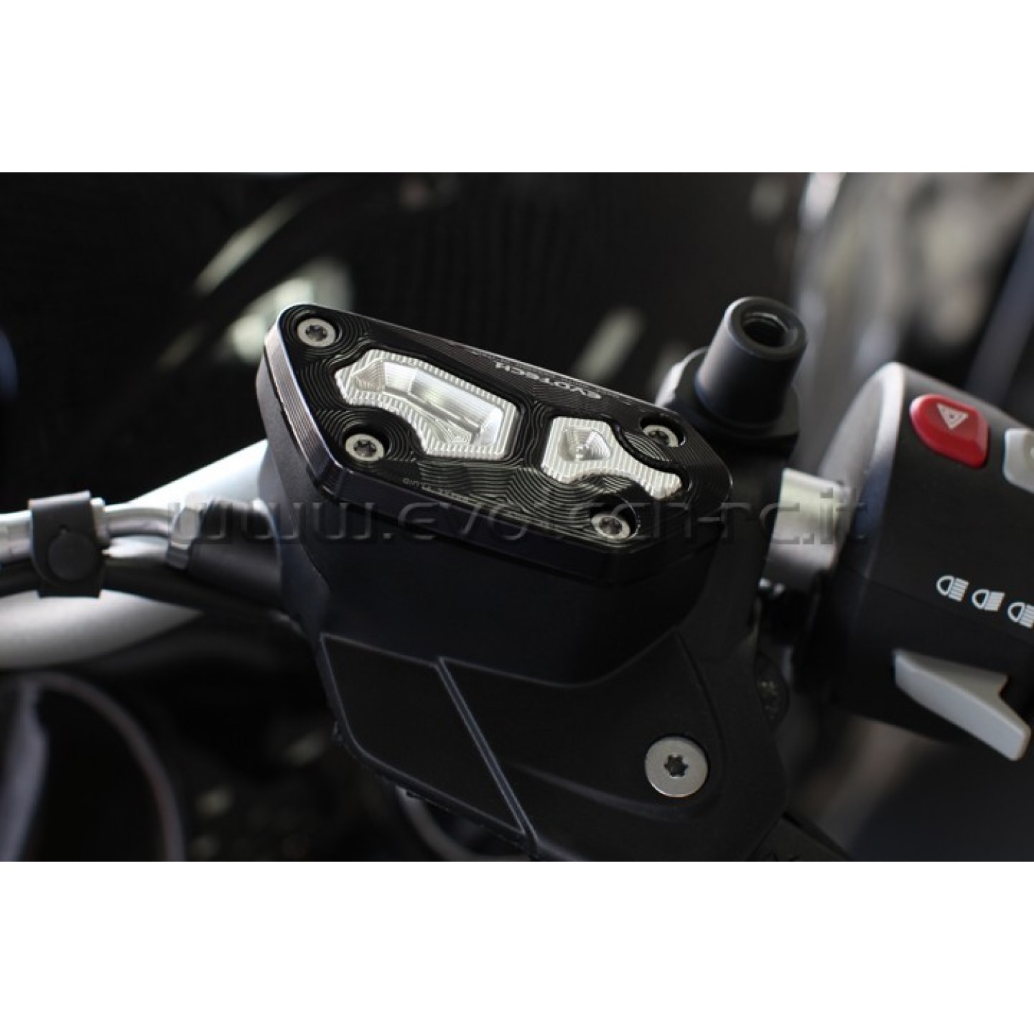 Evotech a créé ce superbe couvercle de bocal d'embrayage d'origine pour Nine T. Composé de deux éléments (un noir et un de couleur) il apportera une touche d'originalité tout en sobriété à votre Nine T.