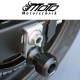 GSG a créé pour CB 300 R 2018+, cet ingénieux système faisant à la fois office de diabolos de béquille de stand et tampons de protection de roue arrière.