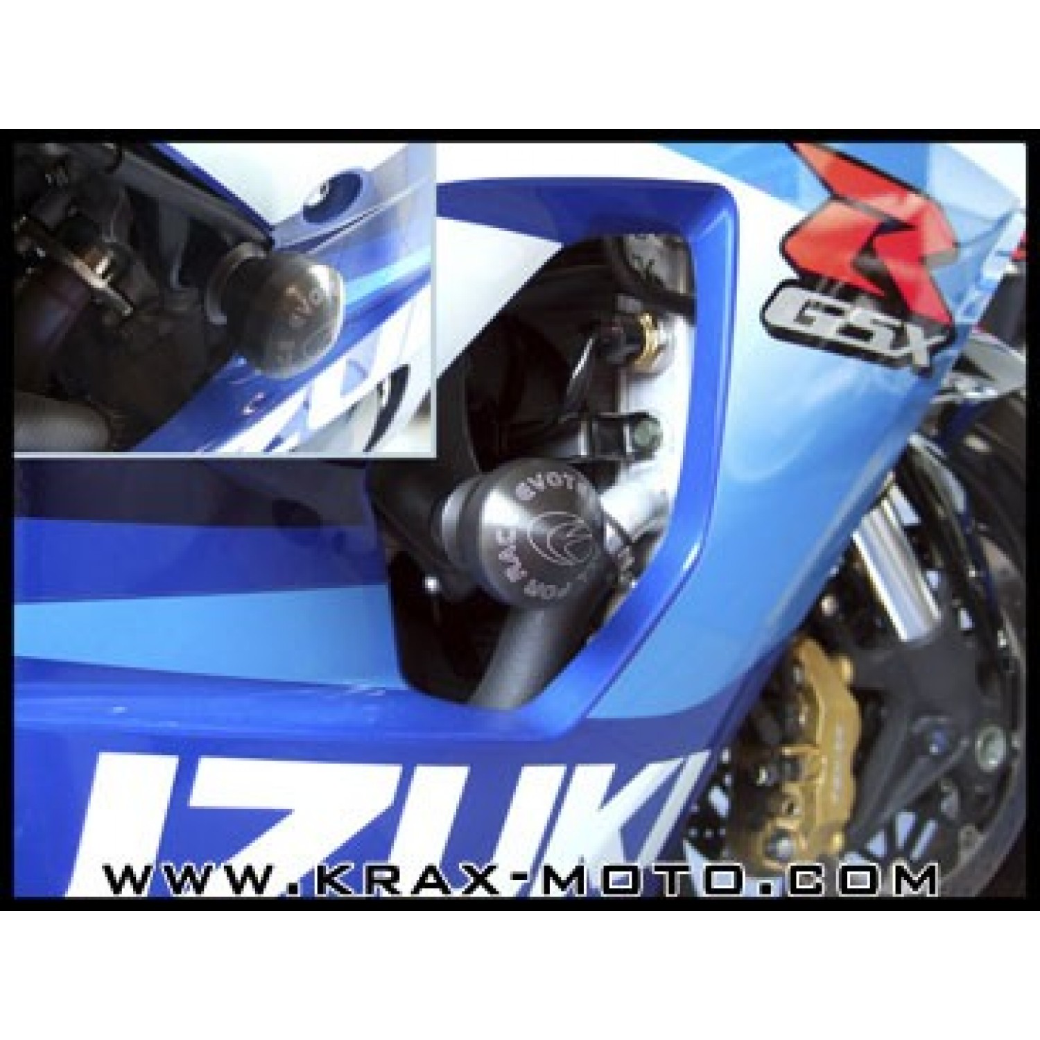 Cette paire de tampons de protection Evotech pour GSXR600 de 1997 à 2005 a un corps en aluminium, un perçage profond et un diamètre important pour éviter de communiquer le stress mécanique au cadre lors d'une chute. Attention: Le montage nécessite un perçage du carénage sur les modèles 2000-03. Ils sont livrés avec des embouts en plastique haute résistance, autolubrifiant (type Teflon) et sérigraphiés au laser et des joints en caoutchouc pour éviter le dévissage du aux vibrations. Des embouts en aluminium permettant de passer des sangles peuvent remplacer les embouts en plastique. Vous les retrouvez dans votre catalogue.