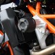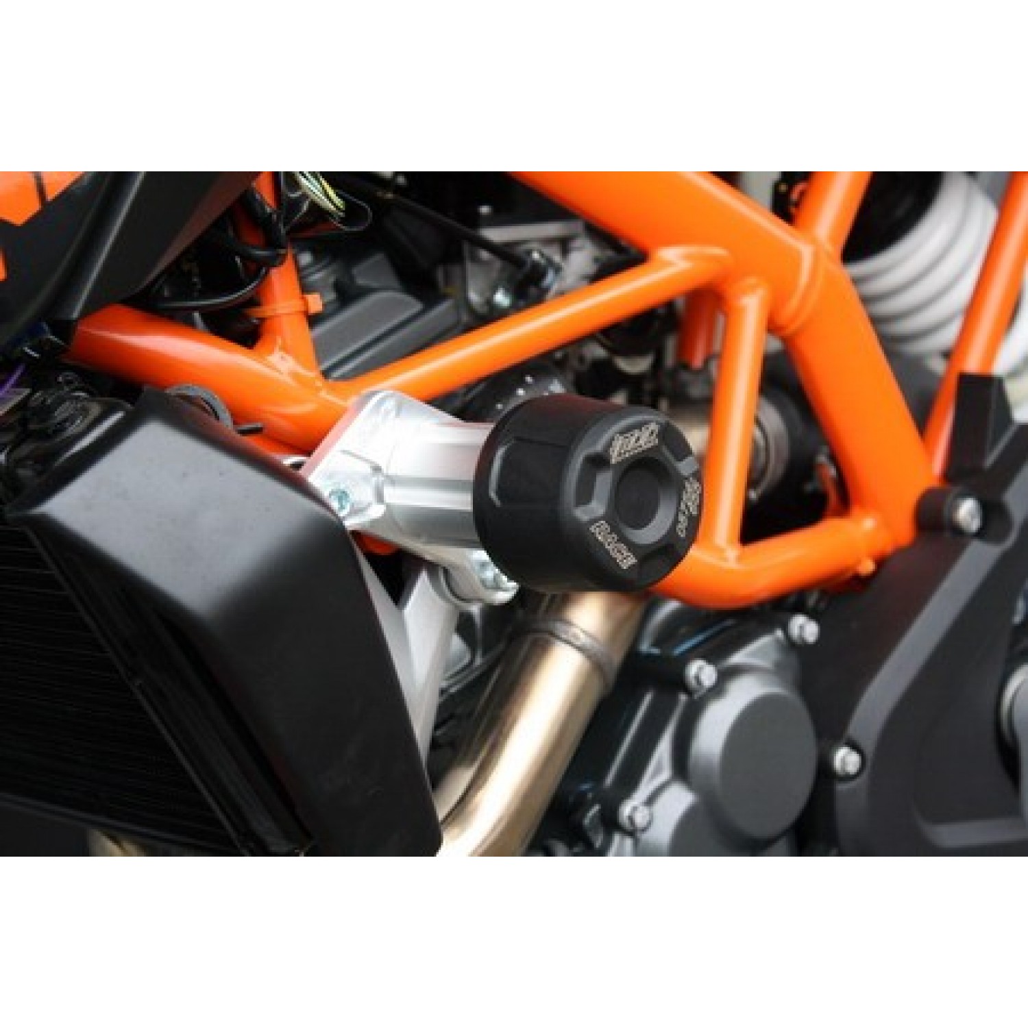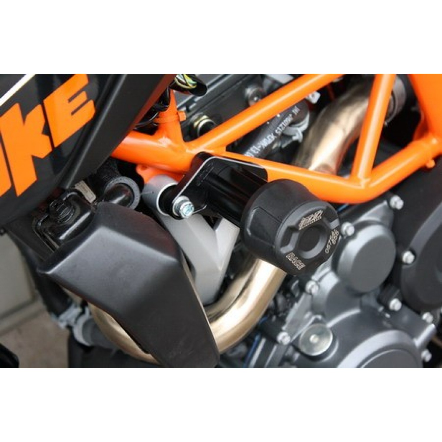 GSG a créé ce kit de protection pour Duke 390. Ultra efficace, il offre à la fois une entretoise en aluminium taillé dans la masse (argent ou noir) deux silent bloc en appui sur le cadre et un capuchon absorbeur breveté par GSG sur chaque tampon.