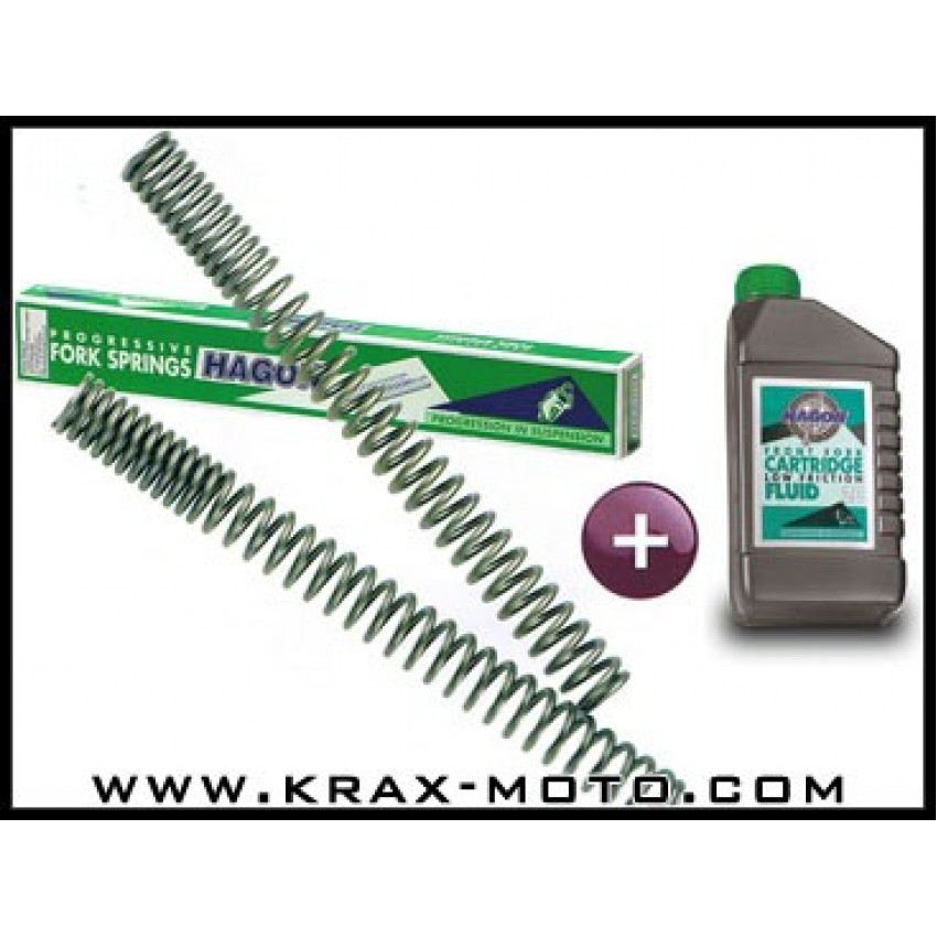 Le kit HAGON comprend une paire de ressort de fourche progressif ainsi qu'un bidon d'huile. Le kit est livré avec une notice de montage, indications du niveau d'huile et l'huile fournie (quantité et viscosité) est adaptée à votre moto.