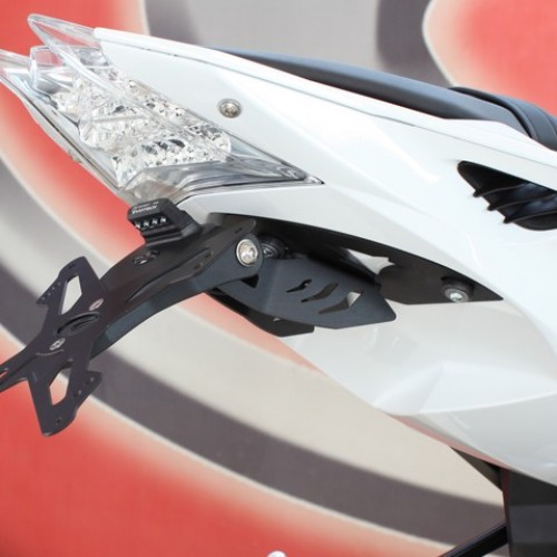 Ce support de plaque pour S1000 RR a été créé par Evotech pour se fixer facilement et affiner l'arrière de votre machine.Il est livré complet, pret à poser, avec visserie et avec ou sans éclairage de plaque à leds.